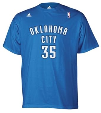 Oklahoma City Thunder Kevin Durant T shirt, made by Adidas the official on court producers of NBA apparel and jerseys. Durant and 35 are printed on the back in authentic font.